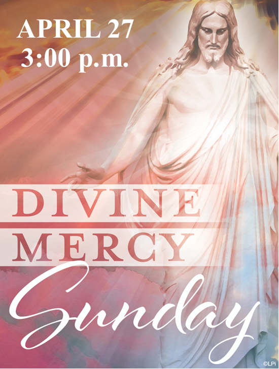 The world is in need of God’s mercy to help us endure the hardships and uncertainty of life as we journey toward our eternal home. Join Deacon Jim Detloff on Divine Mercy Sunday, April 27, at 3:00 p.m. as we adore God and ask for His mercy. Benediction, Rosary, Divine Mercy Chaplet, and Psalms will be included in our worship.